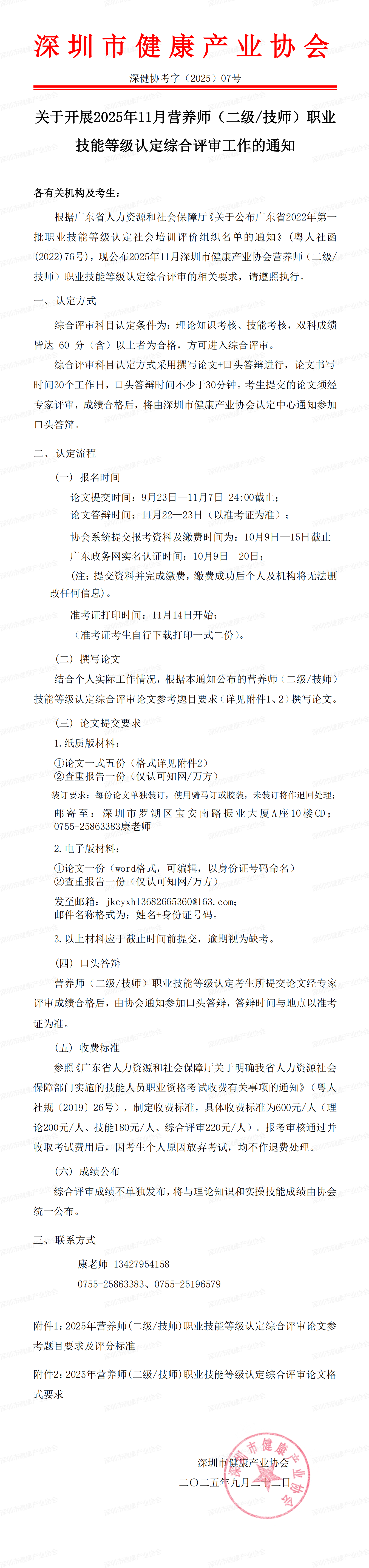 关于开展2025年11月(二级/技师)营养师综合评审认定工作的通知