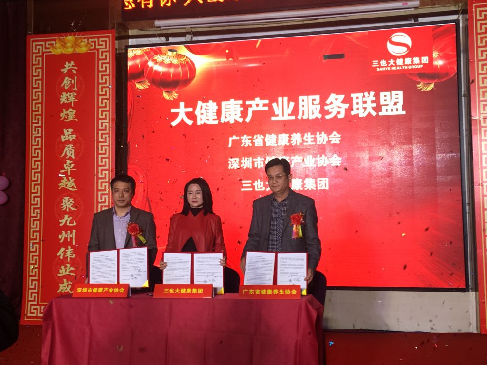 “ 深圳市健康产业协会黄会长受邀出席三也大健康集团2019年度跨年盛典暨“感恩有你,共创未来”颁奖晚宴,活动现场,广东省健康养生协会、深圳市健康产业协会和三也大健康集团签署战略合作备忘录。”