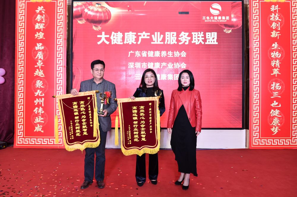 “ 深圳市健康产业协会黄会长受邀出席三也大健康集团2019年度跨年盛典暨“感恩有你,共创未来”颁奖晚宴,活动现场,广东省健康养生协会、深圳市健康产业协会和三也大健康集