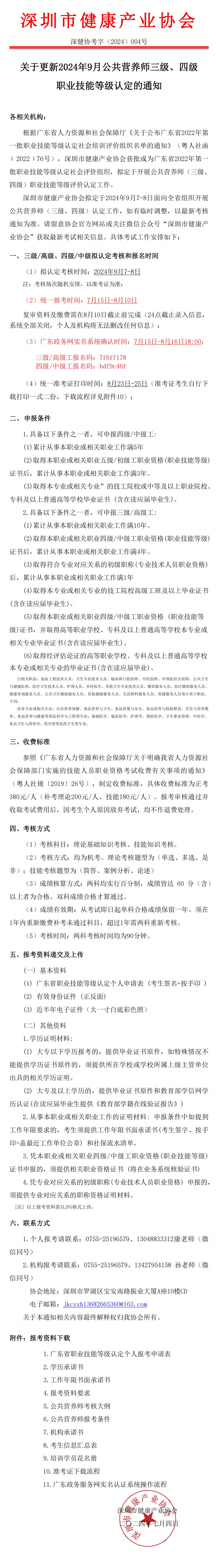 【更新报考时间】关于更新2024年9月公共营养师三级、四级职业技能等级认定的